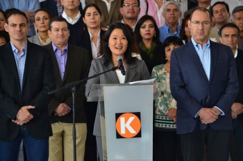 ERP. La lideresa de Fuerza Popular Keiko Fujimori Higuchi, reconoció el triunfo de Pedro Pablo Kuczynski, ganador de la segunda vuelta electoral de acuerdo a los resultados dados a conocer por la Oficina Nacional de Procesos Electorales. La candidata, salió acompañada de su esposo de nacionalidad americana y de los congresistas electos de su organización quienes se encuentran en la capital, por razones de trabajo.
