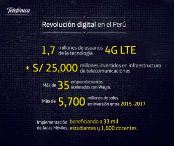 Cabe indicar que desde que inició sus operaciones en 1994, Telefónica ha invertido más de 25.000 millones de soles en el desarrollo de infraestructura de telecomunicaciones para unir con más comunicación a los peruanos. "Esta inversión ha servido para lograr la conectividad en todas las regiones del Perú. Por ello, seguimos apostando por el desarrollo digital del Perú", dijo Linares.