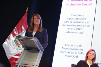 ERP. La Ministra de Desarrollo e Inclusión Social, Cayetana Aljovín, inauguró la V Semana de la Inclusión Social “Desafíos y Oportunidades para la inclusión y el desarrollo productivo en el ámbito urbano y rural”, en la que lanzó las herramientas MIDIStrito y MiRegión para el trabajo articulado con los gobiernos locales y regionales para contribuir a la reducción de la pobreza en el país.