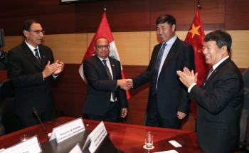 En la Cancillería, en el marco de la II Reunión del Mecanismo de Diálogo Estratégico sobre cooperación económica Perú – China, Tamayo Flores, suscribió el convenio de promoción del proyecto minero Rio Blanco con el consorcio Xiamen Zijin Tongguan Investment Development Corporation.