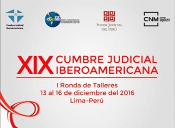 ERP. Del 13 al 16 de diciembre se realizará en Lima la Primera Ronda de Talleres hacia la XIX Cumbre Judicial Iberoamericana (CJI), Ecuador 2018, en la que expertos nacionales e internacionales analizarán aspectos del "Fortalecimiento de la administración de Justicia en Iberoamérica, las innovaciones procesales en la justicia por audiencias, las nuevas tecnologías y el desafío de la formación judicial".