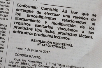 ERP. El Ministerio de Salud (Minsa) conformó una Comisión Ad Hoc que se encargará de revisar los procedimientos relacionados al otorgamiento y modificación de los registros sanitarios vinculados a los productos tipo leche, productos lácteos, entre otros productos lecheros.
