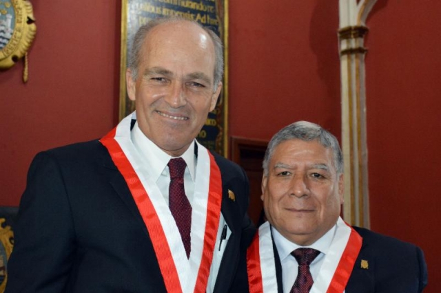 El discurso de orden estuvo a cargo del decano de la Facultad de Ingeniería de la UNMSM, Carlos Quispe. La imposición de la Medalla, la entrega del Diploma y la Resolución Rectoral que lo acreditan como Doctor Honoris Causa, estuvo a cargo del Rector de dicha universidad, Orestes Cachay.