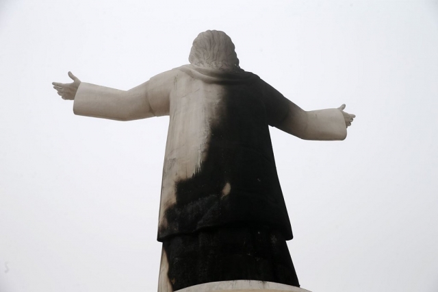 Señaló que la estructura del monumento no ha sido afectada, ya que la mancha negra en la parte posterior es solo producto del humo y no de las llamas. En realidad, la efigie se mantuvo firme en su estructura y libre de deterioros excepto la parte afectada por las llamas.