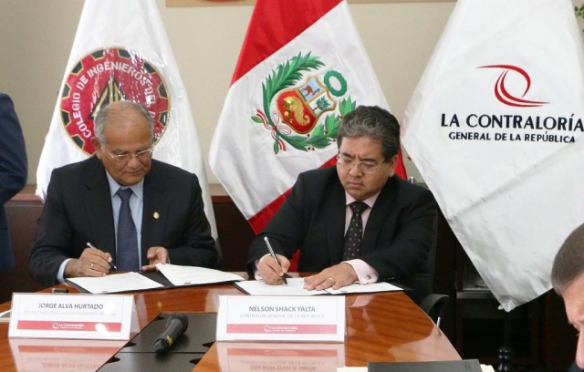 La firma estuvo a cargo del titular de la CGR, Nelson Shack Yalta, y el Decano Nacional del CIP, Jorge Elías Domingo Alva Hurtado, con la presencia de autoridades y funcionarios de ambas entidades.