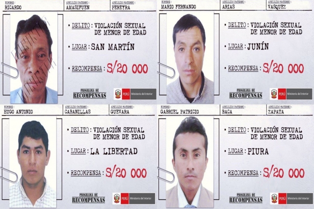 La lista completa de los buscados por la justicia se puede encontrar en el link http://www.recompensas.pe/
