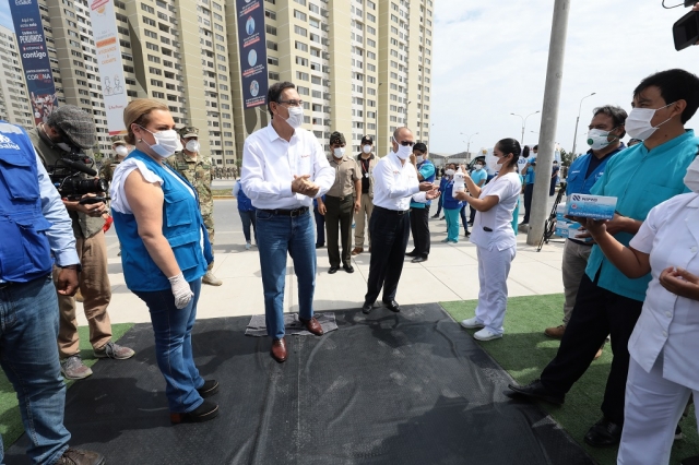 Tanto la indicada funcionaria como el presidente de la República, Martín Vizcarra, realizaron la supervisión del acondicionamiento de dos nuevas torres en la Villa Panamericana para la atención de 900 pacientes contagiados y con sospecha de coronavirus en el Centro de Atención y Aislamiento Temporal Covid-19.