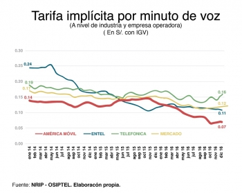 ERP. De acuerdo a información oficial publicada por OSIPTEL correspondiente al cierre del 2016, la tarifa promedio de telefonía móvil de CLARO es la opción más económica del mercado –S/. 0,07 por minuto de voz, aspecto que favorece a los usuarios quienes esperan que este tipo de servicio que integra a la población peruana beneficie a la mayor parte de usuarios.