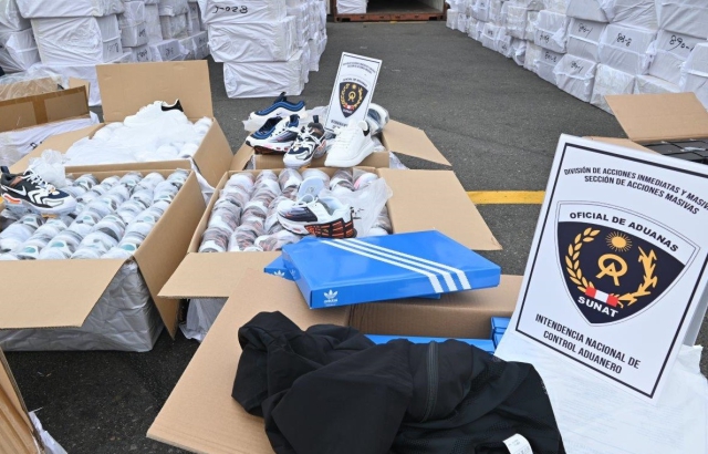 ERP. Más de 40 mil pares de zapatillas y miles de prendas de vestir de reconocidas marcas valorizadas en más de 3 millones 200 mil soles, que se pretendía comercializar con motivo de la campaña navideña en Bolivia, fueron incautados la Superintendencia Nacional de Aduanas y de Administración Tributaria (SUNAT) en un terminal portuario del Callao.