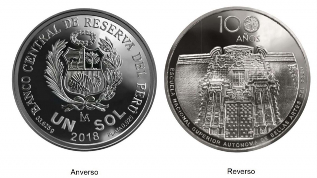 ERP. El Banco Central de Reserva (BCR) pone hoy en circulación una moneda de plata alusiva al centenario de la Escuela Nacional Superior Autónoma de Bellas Artes del Perú.