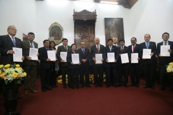 En esta ceremonia estuvieron presentes, los recores de de la Universidad Mayor de San Marcos, Universidad San Cristóbal de Huamanga, Universidad San Antonio de Abad del Cuzco, Universidad Nacional de Trujillo, Universidad Nacional de San Agustín, Universidad del Altiplano de Puno, Universidad Nacional de Ingeniería, Universidad Agraria La Molina, Universidad del Centro del Perú, Universidad Nacional de Piura, Universidad Nacional de la Amazonia Peruana y la Universidad de Educación Enrique Guzmán y Valle.