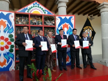 En este acto académico en el Centro Cultural de la UNSCH participaron junto con el rector de la UNP, director de la Escuela de Postgrado, el Dr. Santos Montaño Roalcaba y el decano de la Facultad de Economía Dr. Humberto Correa Cánova.