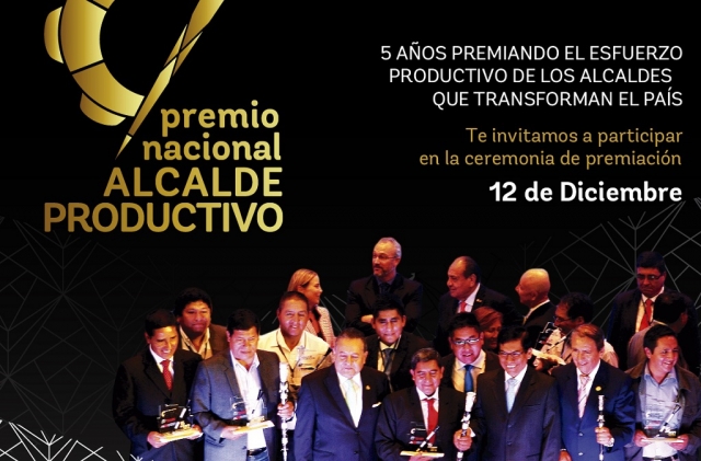 ERP. Con la finalidad de reconocer los esfuerzos de varios gobiernos locales, se lleva adelante el V Premio Nacional Alcalde Productivo el cual como se tiene conocimiento busca empoderar a los gobiernos locales del país a fin de que ejecuten acciones y políticas públicas que generen crecimiento productivo, formen clústeres por cadenas de valor y polos de inversión.