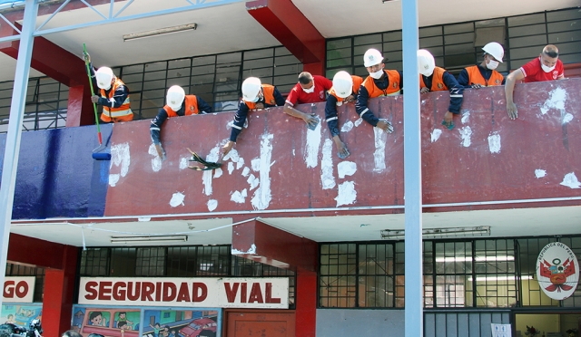 En esta institución educativa, 80 miembros de la Marina, el Ejército y la Fuerza Aérea vienen realizando trabajos de limpieza y pintado de la fachada y diversos ambientes así como mantenimiento de los baños. Por otra parte, la Asociación de Padres de Familia está construyendo un aula para profesores y un kiosko de ventas.
