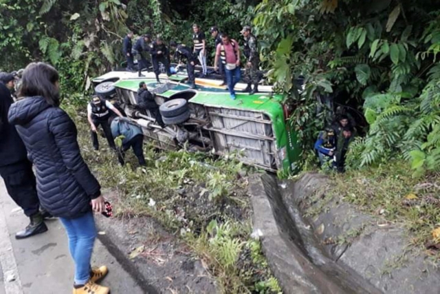 Desde Madre de Dios, el general PNP Neyre Rodríguez Moreno, Director Nacional de Investigación Criminal, confirmó el accidente y agregó que en el ómnibus viajaban 47 personas, entre policías, peritos y fiscales. Agregó que el accidente se produjo a la altura del kilómetro 15 de la vía Interocéanica, cerca de Puerto Maldonado.