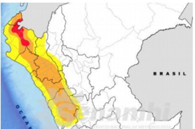 El Servicio Nacional de Meteorología e Hidrología (Senamhi) informó que desde este sábado 23 al martes 26 de febrero se presentará lluvia en la costa y sierra norte, así como precipitaciones en la sierra centro del país, las que afectarán 68 provincias de las regiones Amazonas, Áncash, Cajamarca, Huánuco, La Libertad, Lambayeque, Piura y Tumbes.