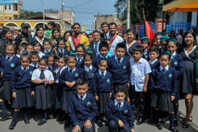 Cientos de mocheros felicitaron el loable gesto del empresario al ser testigos de la firma para la implementación de los ambientes de computo, arte, teatro, música y deporte para la institución educativa Ramiro Ñique.