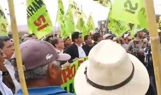 De igual manera, hacia el lugar llegaron los congresistas del Frente Amplio, para acompañar a la población en la protesta, para revertir el otorgamiento de la licencia de construcción y que permite la explotación minera en la mina "Tía María" en el Valle del Tambo, provincia de Islay en Arequipa.