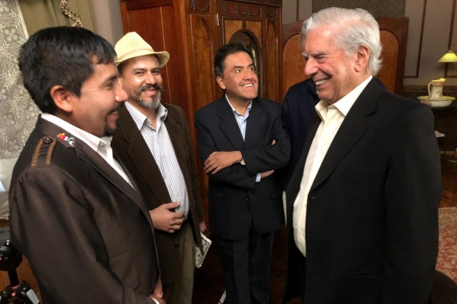 El encuentro del gobernador de Arequipa y el premio nobel se dio en las instalaciones de la Casa Museo Mario Vargas Llosa, donde nació en 1936. Ambos conversaron durante una pausa a la labor del nobel en las grabaciones de una cadena de televisión mexicana.