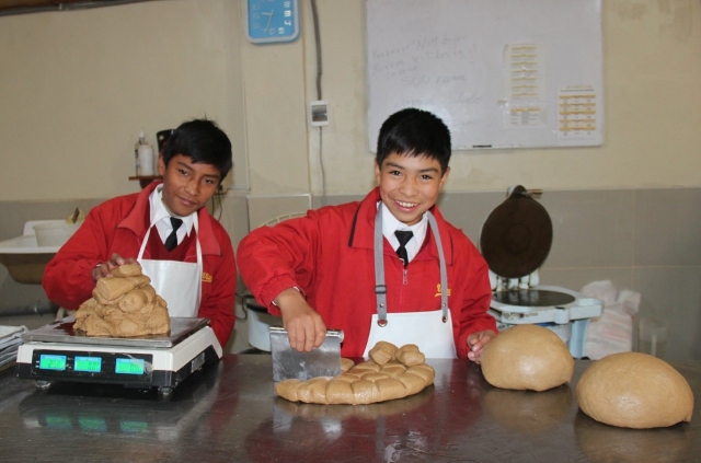 Alex Inga Aparco, exalumno formado en el colegio seminario “San Juan María Vianney”, está a cargo de la panadería en el CETPRO y elabora los panes con el apoyo de 18 alumnos del tercer, cuarto y quinto año.