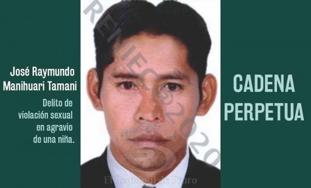 ERP. José Raymundo Manihuari Tamani de 33 años, fue condenado a la pena máxima de cadena perpetua tras ser hallado culpable del delito de violación sexual en agravio de una niña en la provincia de Zarumilla, región Tumbes, informó el Ministerio Público.