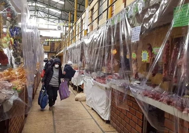ERP. Los comerciantes de los mercados ubicados en el distrito de Yanacancha, en la provincia y región Pasco, reforzaron sus medidas de seguridad para evitar ser contagiados con el coronavirus (covid-19) y decidieron cubrir sus puestos con plásticos dobles.