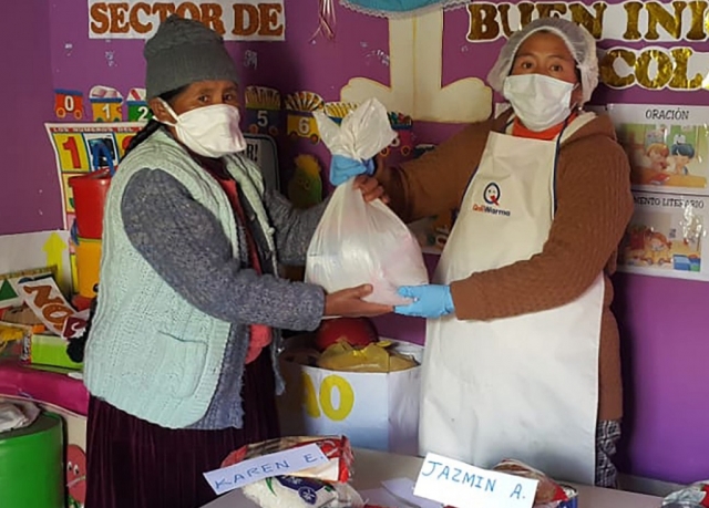Ellas, como parte de los CAE, están jugando un rol estratégico, pues se encargan de la distribución equitativa de los alimentos, minimizando el fraccionamiento y la manipulación excesiva de los mismos con la finalidad de evitar su contaminación. Además, están tomando las medidas de control sanitario pertinentes en el proceso de entrega de los alimentos a las madres y padres de familia.