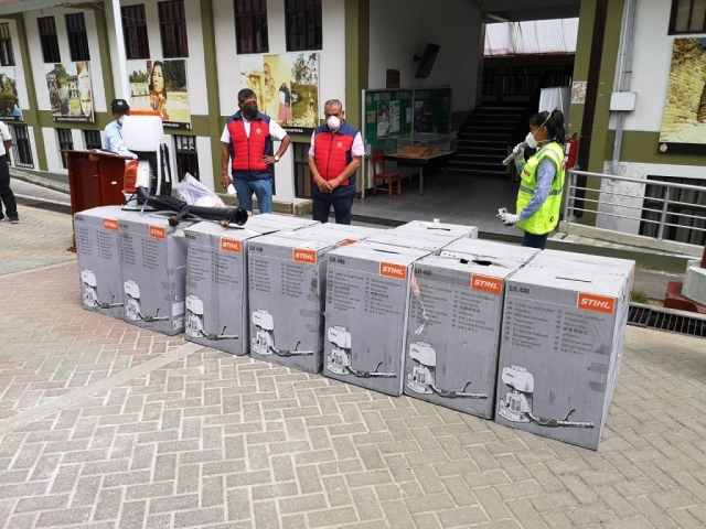 Una parte de la donación consiste en la entrega de 15 moto fumigadoras y 15 trajes protectores al Gobierno Regional de Amazonas. Este material servirá para incrementar la capacidad de limpieza y desinfección de lugares públicos de la región, en especial en las localidades por las cuales pasa la carretera IIRSA Norte.