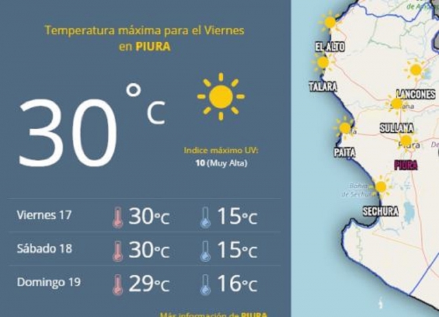 ERP. La Región Piura, sobre todo provincias de la costa y su similar de Lambayeque, enfrentan un clima diferente; de acuerdo al Servicio Nacional de Meteorología e Hidrología (Senamhi) estas se encuentran relacionadas con la corriente marina de Humboldt, llamada también corriente del Perú, que se desplaza de sur a norte influyendo en la disminución la temperatura mínima en la franja costera de regiones del norte peruano.
