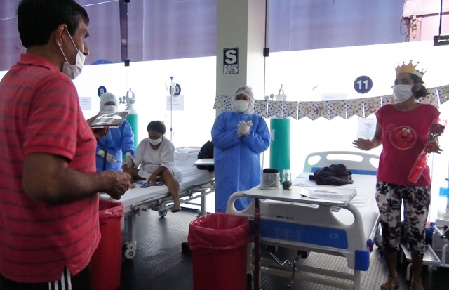ERP. ¡25 años y su amor se mantiene firme! Cuando Nicia Vela, escuchó a su esposo cantar las primeras estrofas del tema ¡Qué linda Flor!, del intérprete Silverio Urbina, su corazón se alegró inmensamente, y lo mismo ocurrió con el personal médico y asistencial de la Villa EsSalud Pucallpa, que hizo un alto a sus actividades para acompañar con palmas este enternecedor momento, con motivo del cumpleaños número 49 de la paciente.