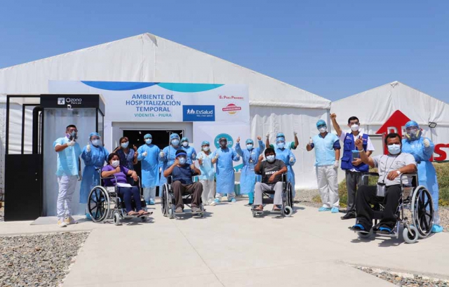 Además, a mediados julio se entregó el centro temporal de Cerro Juli, en Arequipa, y hace dos semanas se entregaron dos centros temporales en Cajamarca y Jaén, que están próximos a atender a sus primeros pacientes. Próximamente, se prevé entregar el ambiente de hospitalización temporal edificado al costado del Hospital Regional de Loreto, en el distrito de Punchana, en Iquitos.
