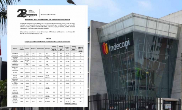 Este hallazgo se dio en el marco de la investigación realizada por la institución a un total de 250 colegios privados a nivel nacional con el propósito de verificar que la información que brindaban a los usuarios del servicio educativo, sobre la estructura de costos, sea veraz; y que, por lo tanto, el cobro realizado corresponda a un servicio efectivamente prestado.