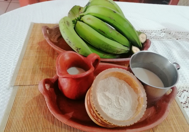 La harina de plátano proporciona energía para que las niñas y niños estén atentos durante sus clases escolares. Se debe precisar que el plátano contribuye a moderar los niveles de azúcar en la sangre y aporta vitaminas A, B1, B2, B3, B6 y calorías. También aporta fibra y minerales.
