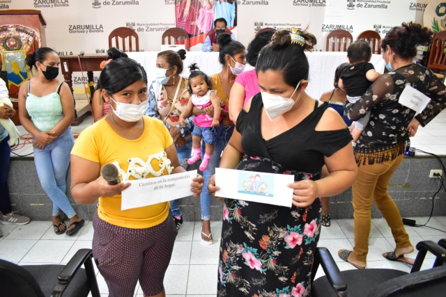 ERP. Cerca de 100 nuevas familias de Tumbes, afiliadas al programa Juntos, del Ministerio de Desarrollo e Inclusión Social (Midis), participaron en talleres lúdicos en los que fueron sensibilizadas sobre la importancia de cumplir sus compromisos en salud y educación.