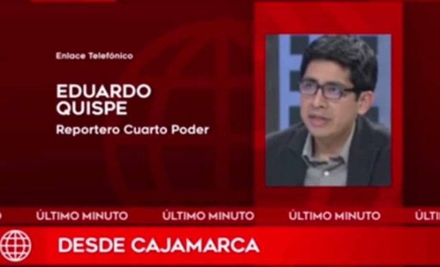 ERP. El reportero Eduardo Quispe del dominical Cuarto Poder, fue retenido este miércoles 6 de julio por rondas campesinas, cuando realizaba un reportaje periodístico en el distrito de Chadín, en la localidad de Chota, en Cajamarca. El periodista, quien fue detenido junto con su camarógrafo, fue obligado a leer en señal abierta un comunicado en favor del gobierno del presidente de la República, Pedro Castillo.