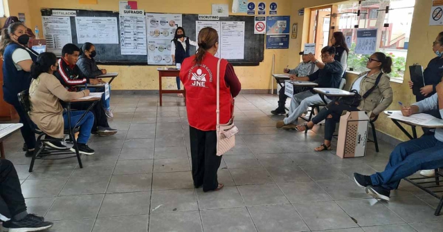 ERP. El Jurado Nacional de Elecciones (JNE) fiscalizó este domingo la jornada de capacitación de los ciudadanos que cumplirán la función de miembros de mesa de sufragio (titulares y suplentes) durante la segunda elección regional del próximo 4 de diciembre.