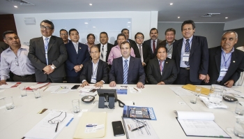 ERP. En la línea del acercamiento del sector público al privado, que promueve el Gobierno, el ministro de la Producción, Bruno Giuffra, se reunió con representantes gremiales y de las Cámaras de Comercio de Arequipa, Ayacucho, Ancash y La Libertad, con la finalidad de impulsar la creación de los Centros de Desarrollo Empresarial (CDE) a en todo el país.