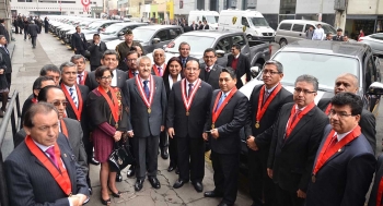 Presidente del Poder Judicial entrega modernas camionetas a 18 cortes del país