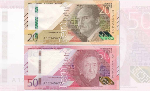 ERP. El Banco Central de Reserva del Perú pone en circulación nuevos billetes de S/ 20 y S/ 50 que incorporan modernos diseños, nuevos motivos y renovados elementos de seguridad, dentro de su programa de emisión de la nueva familia de billetes. Con estos billetes se rinde homenaje a destacados personajes de nuestra literatura e historia del siglo XX, resaltando además nuestra variada flora y fauna.