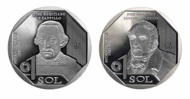 ERP. El Banco Central de Reserva del Perú pone en circulación la quinta y sexta monedas de la Serie Numismática “Constructores de la República Bicentenario 1821–2021” alusivas a José Baquíjano y Carrillo de Córdoba y a José Faustino Sánchez Carrión, en el marco de la conmemoración del Bicentenario de la Independencia del Perú. Ambas monedas circularán a partir del 21 de diciembre de 2022.