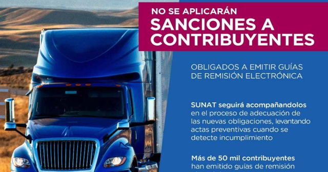 ERP. Con el objetivo de fomentar el cumplimiento voluntario de los contribuyentes, la Superintendencia Nacional de Aduanas y de Administración Tributaria (SUNAT) dispuso la no aplicación de sanciones de comiso de bienes, internamiento temporal de vehículos y multas cuando se detecte incumplimiento de emitir la Guía de Remisión Electrónica (GRE) Remitente y Transportista.