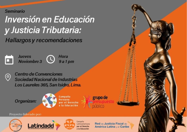 ERP. A pocas semanas del debate y la aprobación del presupuesto público para el 2023 en el Congreso de la República, se realizará el “Seminario Inversión en Educación y Justicia Tributaria: Hallazgos y recomendaciones” cuyo objetivo es presentar los resultados de un estudio sobre cuánto se ha invertido en educación en los últimos cinco años y otro sobre el sistema tributario peruano, cuánto recauda y cuánto deja de recaudar en desmedro del ejercicio de los derechos humanos.