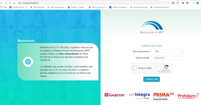 ERP. Con una velocidad increible y tras la oficialización de la norma que autoriza a las Administradoras Privadas e Fondos de Pensiones (AFP) entregar a los afiliados pasivos la suma de 2,000 soles, se estructuró la Web donde se puede observar si se tiene derecho al retiro o no. La web puede ser visitada en el siguiente link, donde se indicará el procedimiento a seguir.