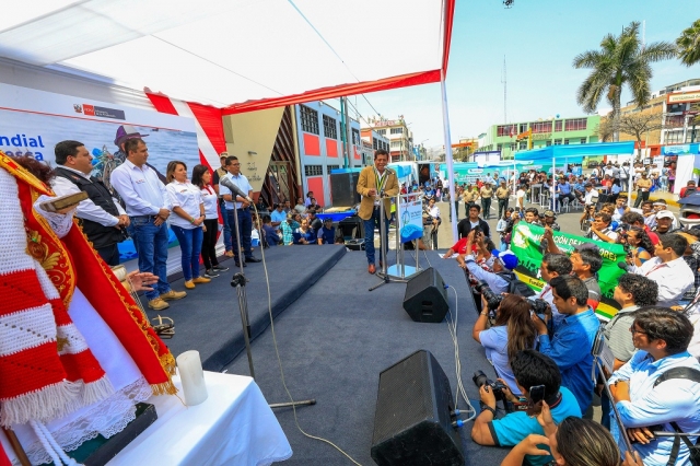 ERP. Se recordó el Día Mundial de la Pesca y permitió destacar una de las potencialidades que tiene el país. Mientras el desembarque mundial de recursos pesqueros asciende en más de 90 millones de toneladas, el Perú cerró el año anterior con un desembarque de 7.3 millones de toneladas en la extracción de estos productos según se destacó en Chimbote, actividad que contó con la presencia de la ministra Rocío Barrios..