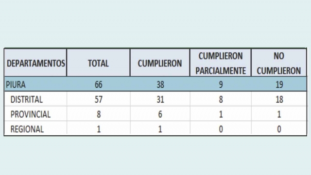 ERP. En Piura un total de 19 municipios no han cumplido con rendición. La Contraloría General advirtió que la ejecución de obras así como la prestación de servicios públicos tan importantes como la limpieza pública y la seguridad ciudadana, entre otros, estarán en riesgo si no existe un proceso ordenado de transferencia de gestión de gobernadores regionales y alcaldes.