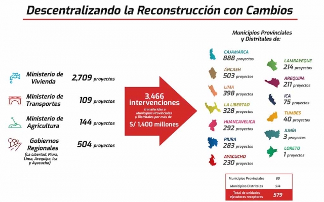 ERP. Con el objetivo de acelerar la ejecución de las obras, la Autoridad para la Reconstrucción con Cambios (ARCC) descentralizó la ejecución de cerca de 3,500 intervenciones a más de 570 gobiernos locales que ahora tendrán la responsabilidad de su ejecución.