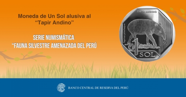ERP. Con una emisión de 10 millones de unidades. El Banco Central de Reserva (BCR) pone en circulación desde hoy la cuarta moneda de la Serie Numismática “Fauna Silvestre Amenazada del Perú” alusiva al Tapir Andino, con una emisión de 10 millones de unidades.