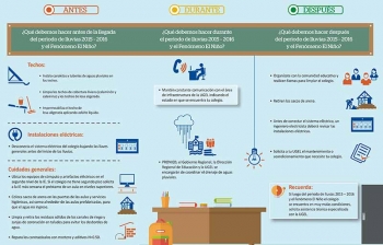 Lima. Como parte de las acciones preventivas para afrontar los efectos del Fenómeno El Niño, el Programa Nacional de Infraestructura Educativa (PRONIED), del Ministerio de Educación, viene difundiendo algunas recomendaciones básicas para actuar antes, durante y después del periodo de lluvias 2015-2016, con la finalidad de proteger la infraestructura y mobiliario de los locales escolares.