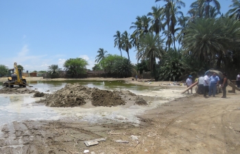 La mañana del martes el cargador frontal, volquete y la bomba de 8 pulgadas fueron operadas para erradicar el agua empozada en “la cancha vieja”. Hasta allí llegó el alcalde distrital, Walter Ayala Antón, acompañado de los regidores Santos Ancajima Zapata y Mariela Bruno Chiroque. Ellos destacaron que esta es una zona baja donde siempre llega el agua que discurre por las calles adyacentes, y se trata del lugar donde pronto se construirá el hospital del Bajo Piura.