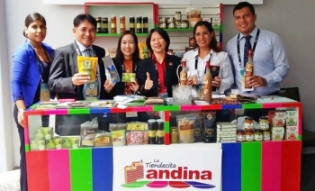 A través de un módulo de La Tiendecita Andina que se exhibe en el Foro APEC – Piura 2016, los visitantes extranjeros tienen la oportunidad de conocer diversos productos nutritivos e innovadores, como chocolates de cacao, cafés especiales, panela orgánica, algarrobina, infusiones de limón, entre otros.